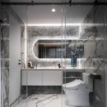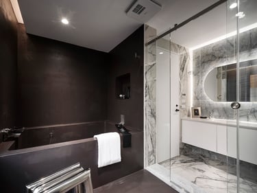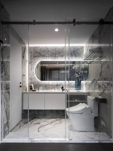 明亮衛浴空間,配備嵌入式大理石浴缸